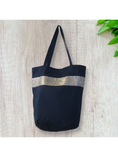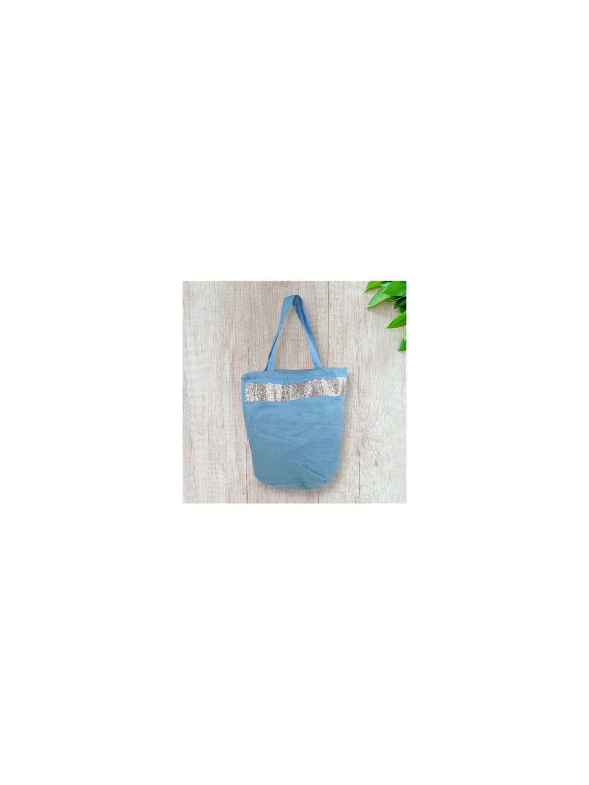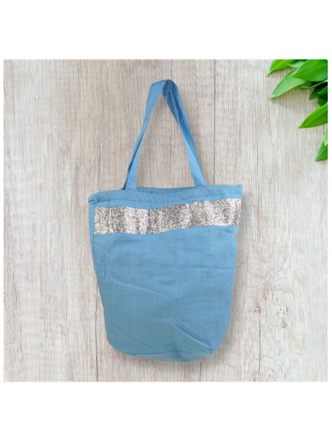 Pour les vacances ou pour tous les jours, sac de courses, d'école, de plage, ce tote bag de couleur est orné d'une bande de paillettes argentées. Il est 100 % coton, et doublé dans une couleur différente.