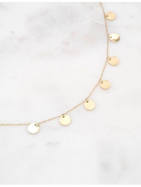 Collier réglable sur chaine composé de pampilles texturées . Fermoir mousqueton et chainette de réglage. Matière : Acier inoxydable Hypoallergénique, ce bijou résiste à l'eau et ne noircit pas. Dimension: 38+7 cm