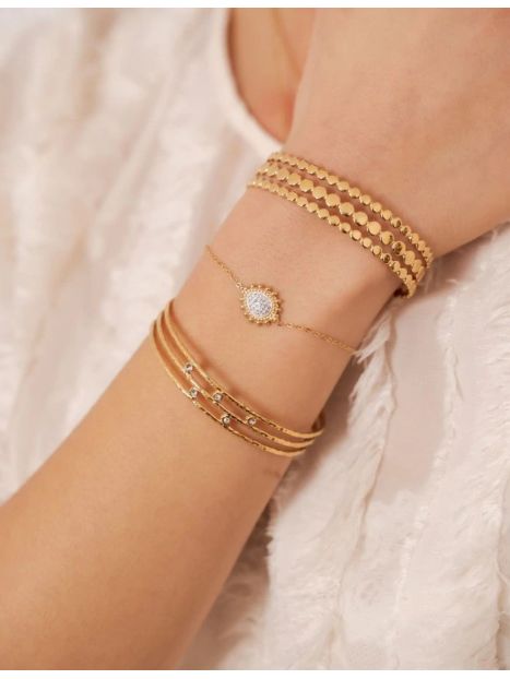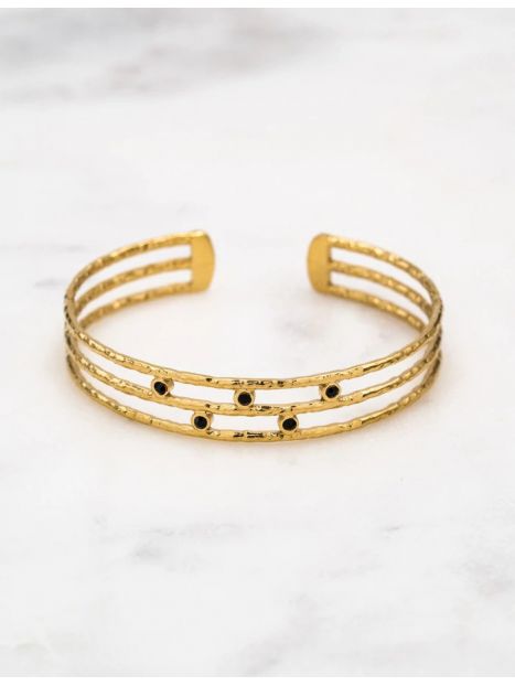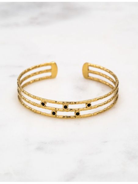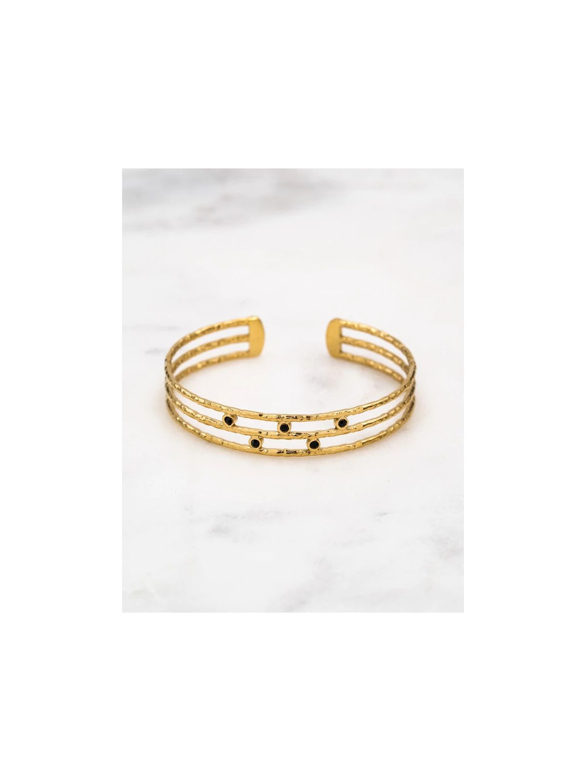 Jonc malléable texturé 3 rangs composé de strass. Matière : Acier inoxydable Hypoallergénique, ce bijou résiste à l'eau et ne noircit pas.