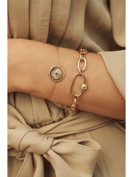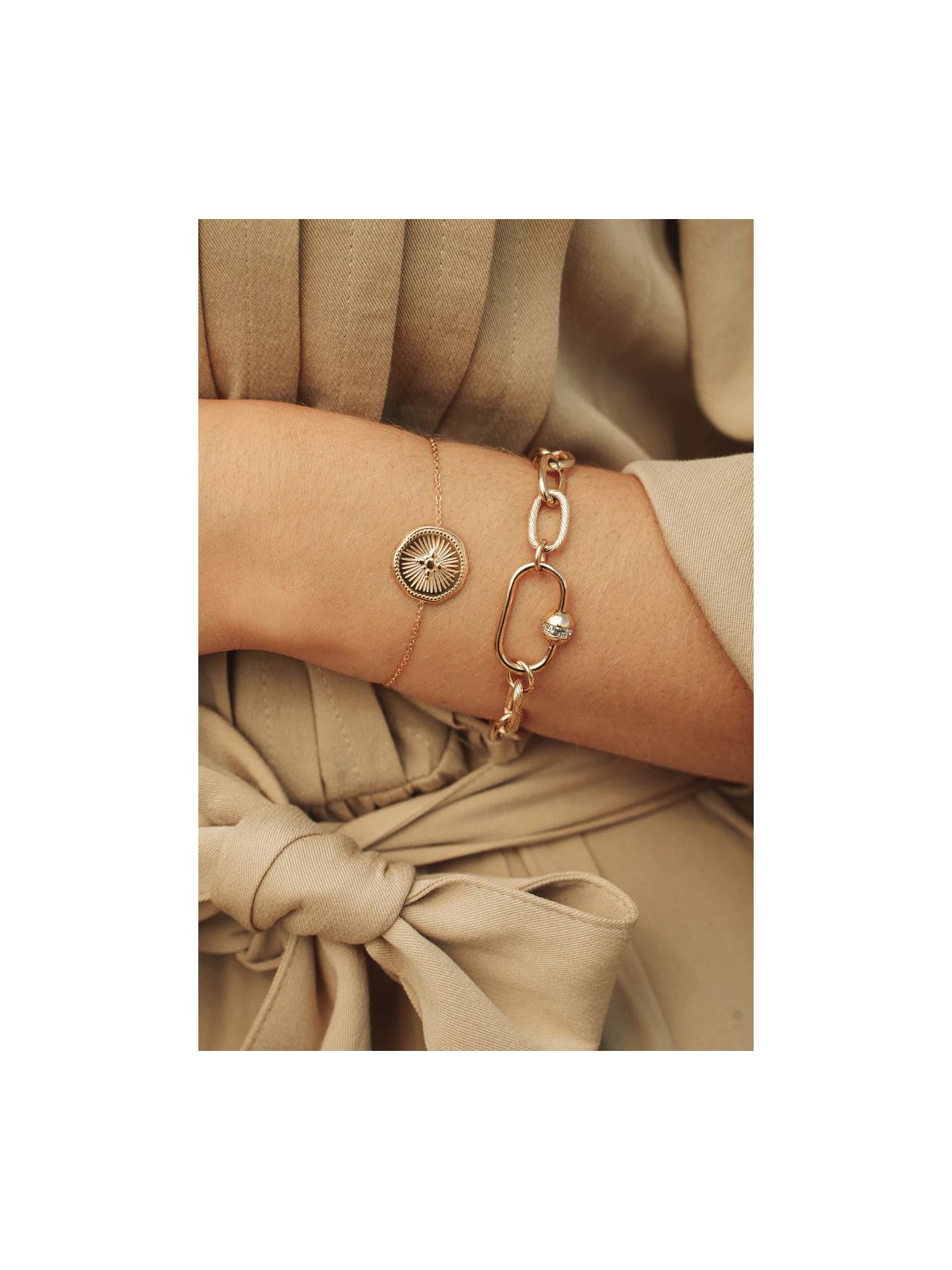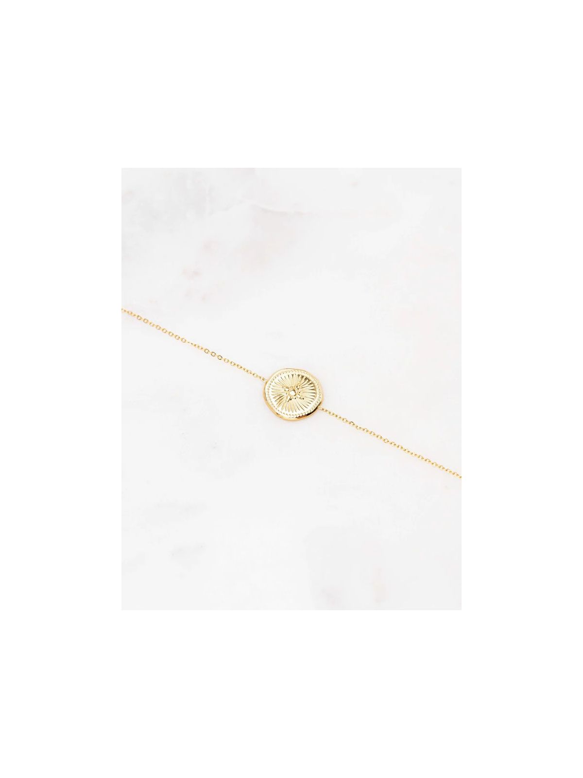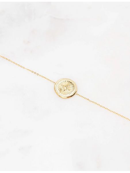 Bracelet sur chaine réglable avec un pendant texturé. Fermoir mousqueton et chainette de réglage. Matière : Acier inoxydable Hypoallergénique, ce bijou résiste à l'eau et ne noircit pas. Dimension: 15 cm + 5 cm de chaînette