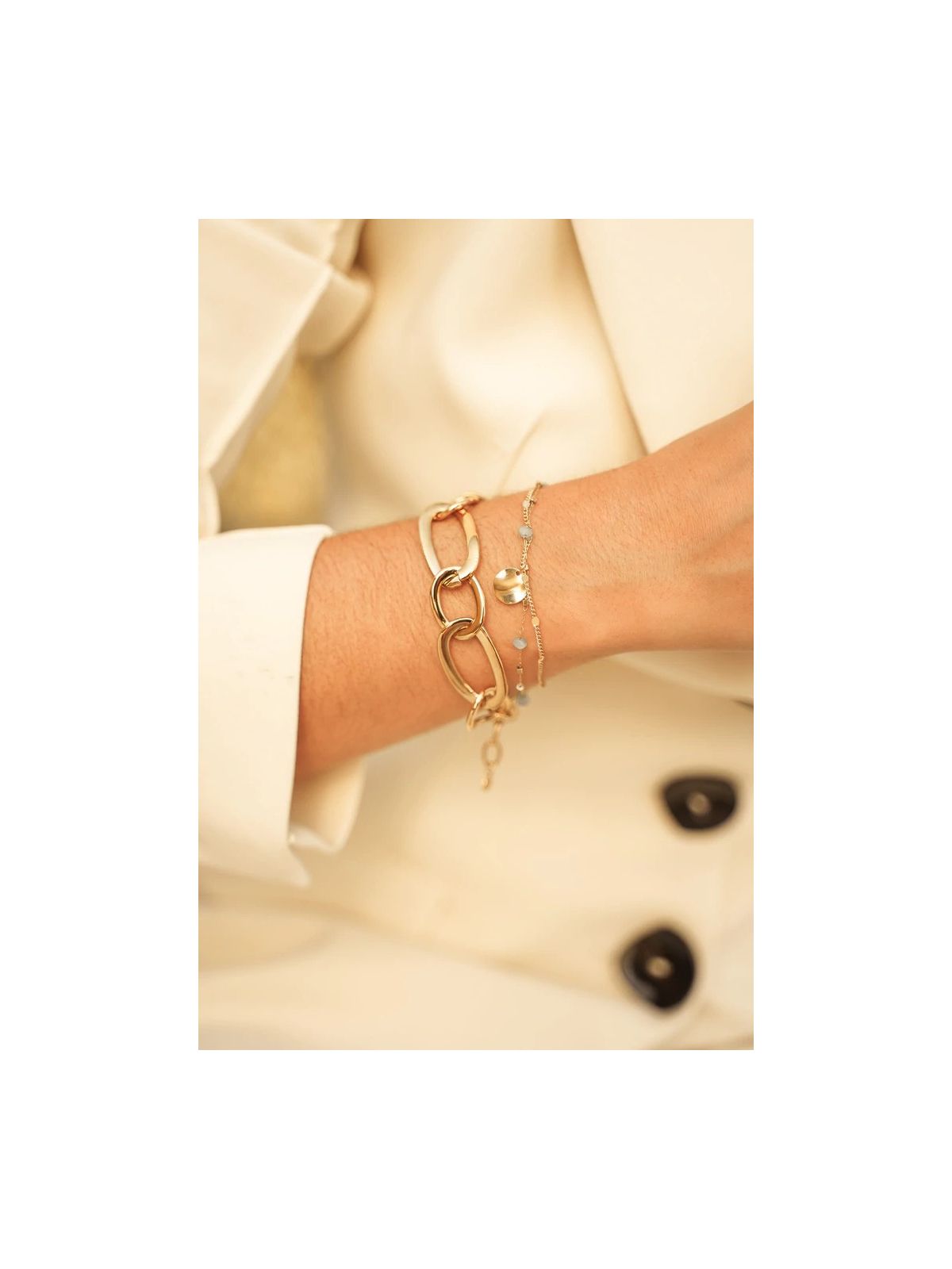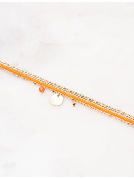 Bracelet multirangs (chaine, fils) avec un joli enfilage de perles en pâte de verre et de pampilles. Dimension: 15,5+3 cm. Matière : Acier inoxydable Hypoallergénique, ce bijou résiste à l'eau et ne noircit pas.