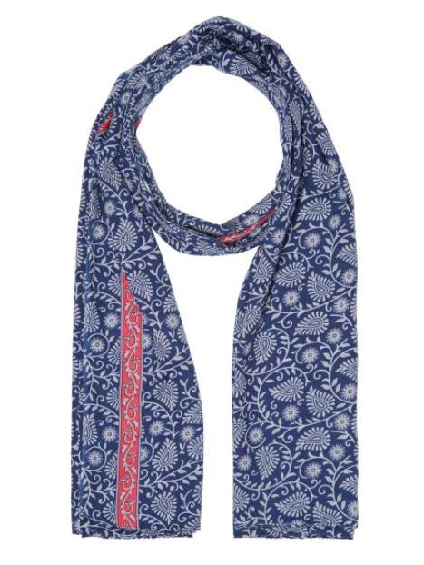 Foulard rectangle petit modèle 180X50 cm bleu et crème