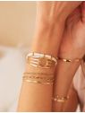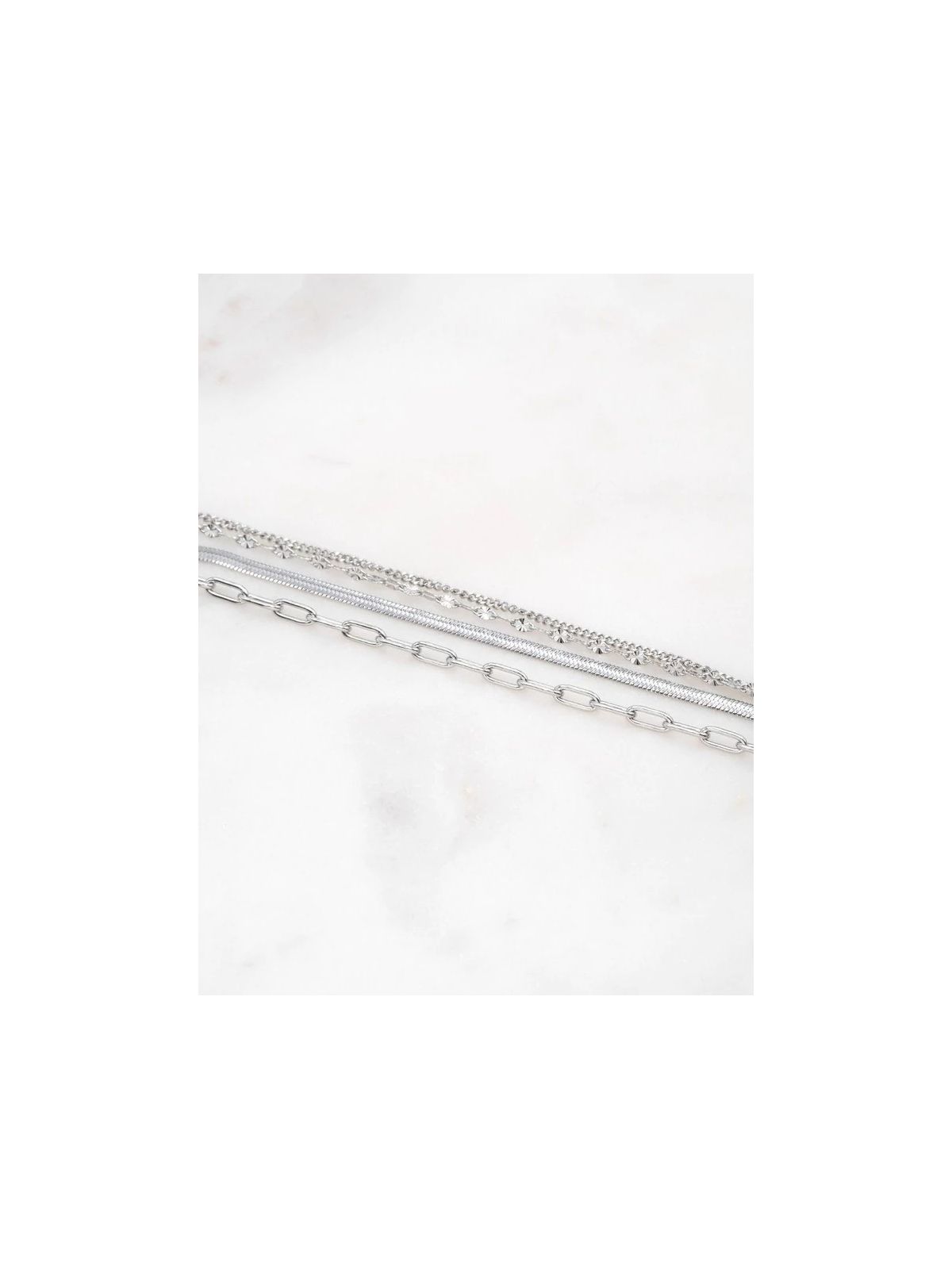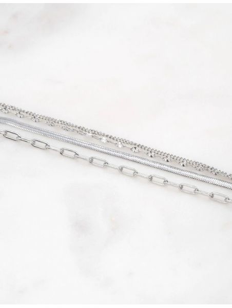 Bracelet réglable sur chaine multirangs avec un jeu de mailles et chaines. Disponible en doré et argenté. Fermoir mousqueton. Matière : Acier inoxydable Hypoallergénique, ce bijou résiste à l'eau et ne noircit pas. Dimension: 15,5+3 cm