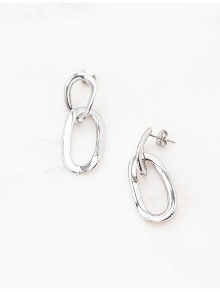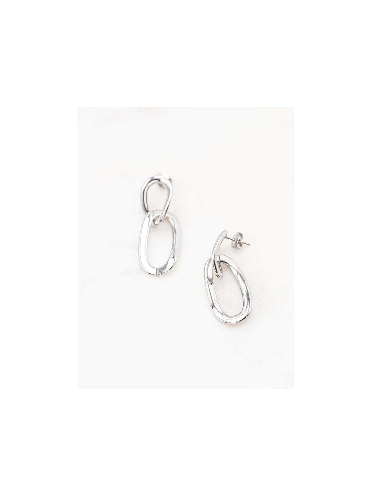 Boucles d'oreilles à puce composées de 2 anneaux graphiques . Disponible en doré et argenté. Matière : Acier inoxydable Hypoallergénique, ce bijou résiste à l'eau et ne noircit pas. Dimension: 1,60 x 4,20 cm