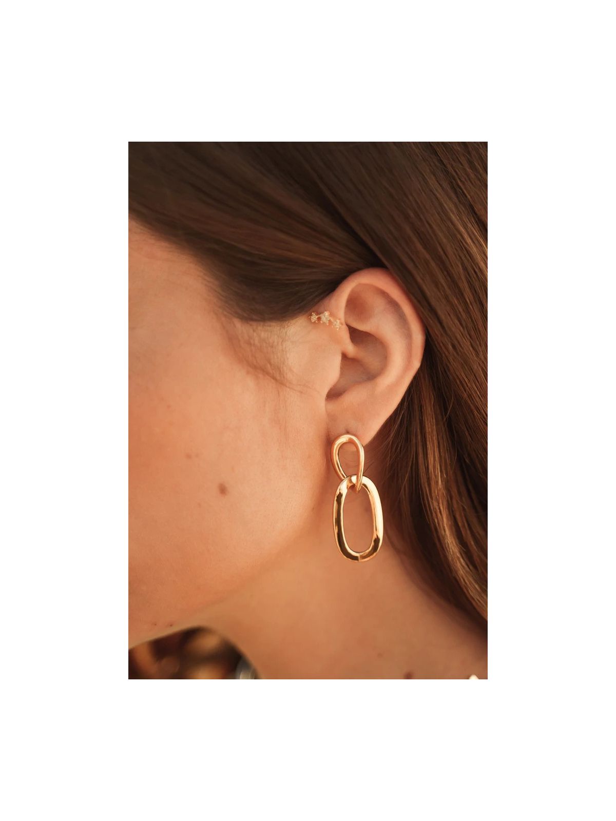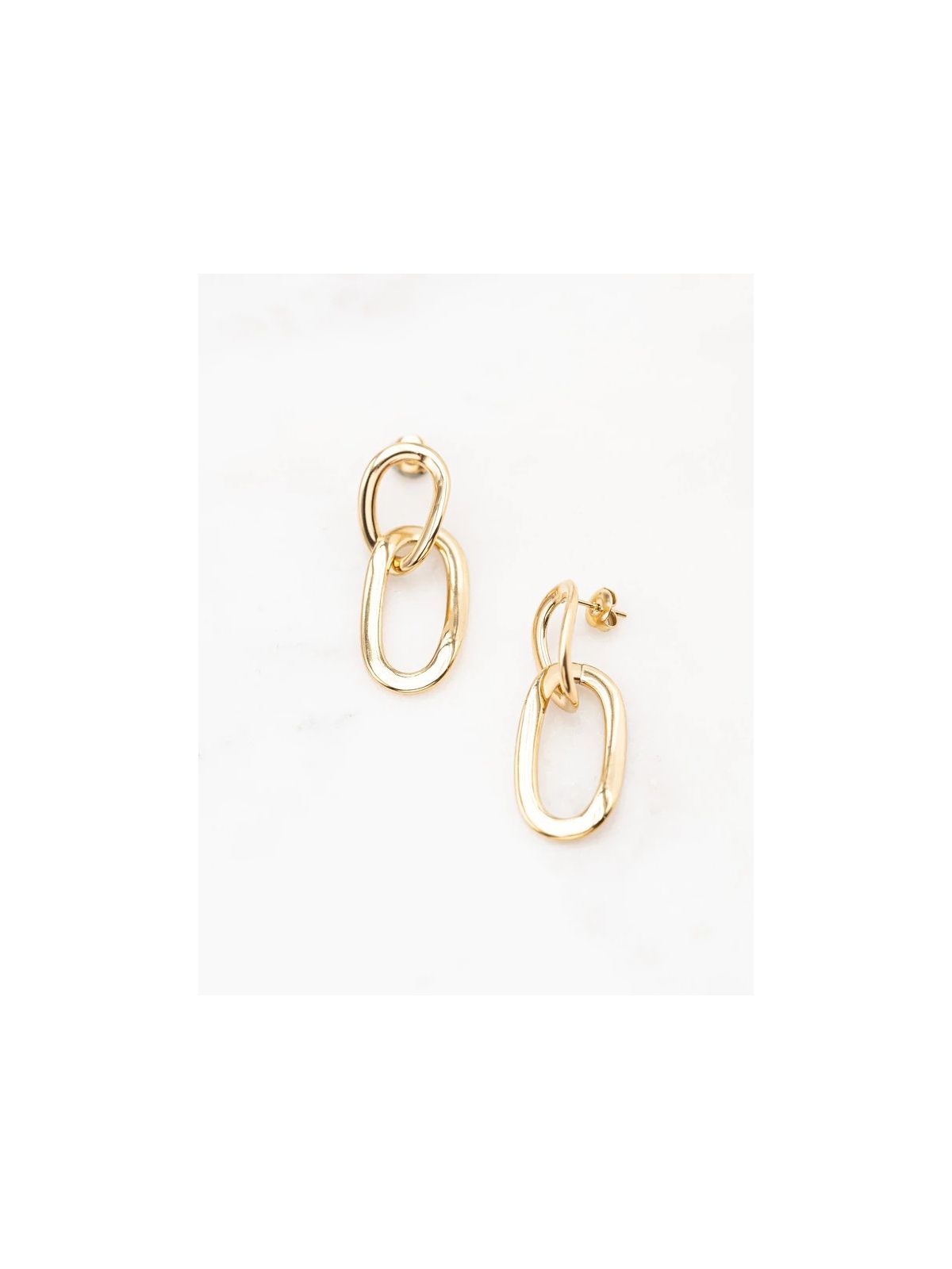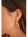 Boucles d'oreilles à puce composées de 2 anneaux graphiques . Disponible en doré et argenté. Matière : Acier inoxydable Hypoallergénique, ce bijou résiste à l'eau et ne noircit pas. Dimension: 1,60 x 4,20 cm