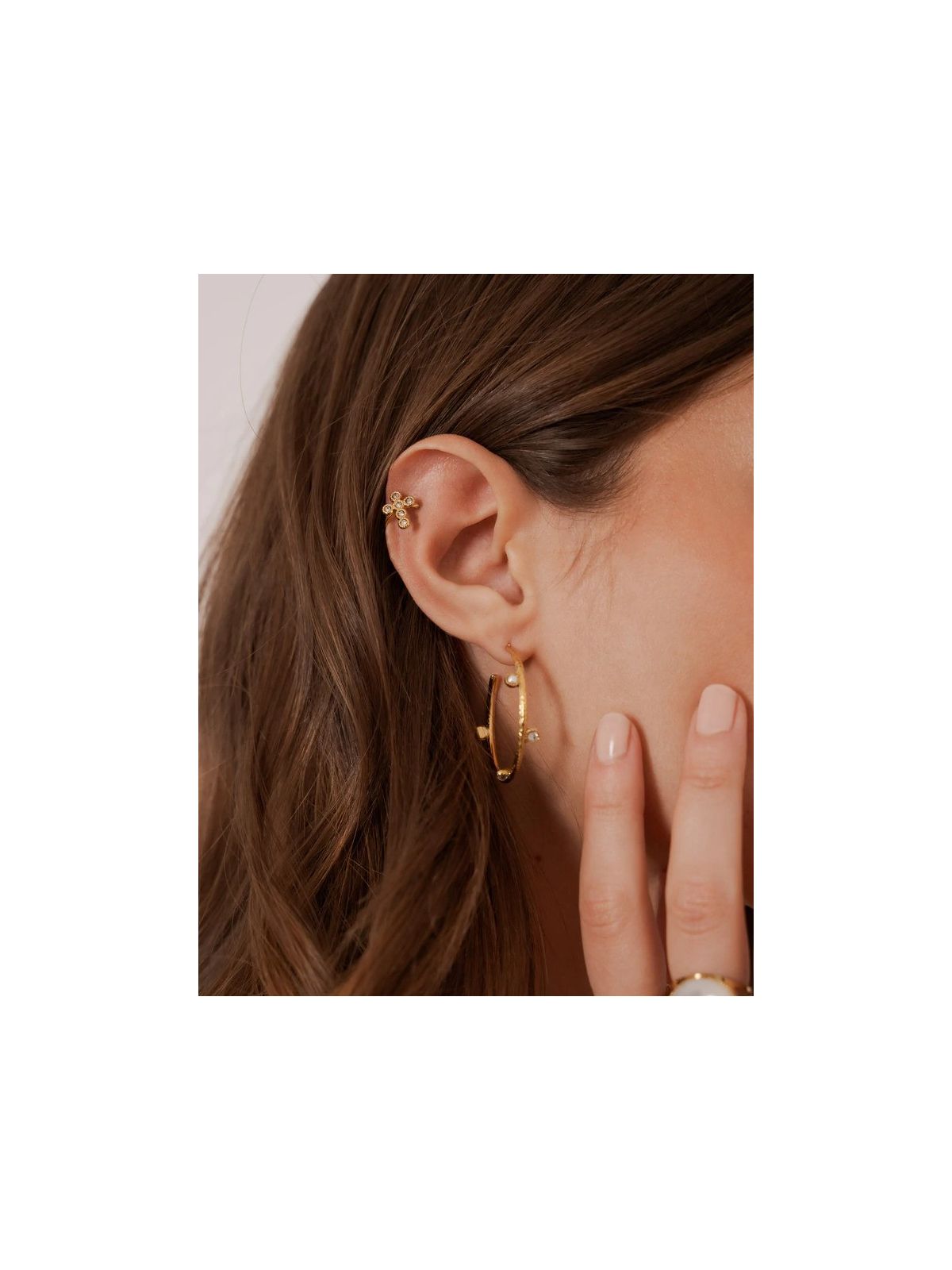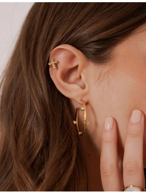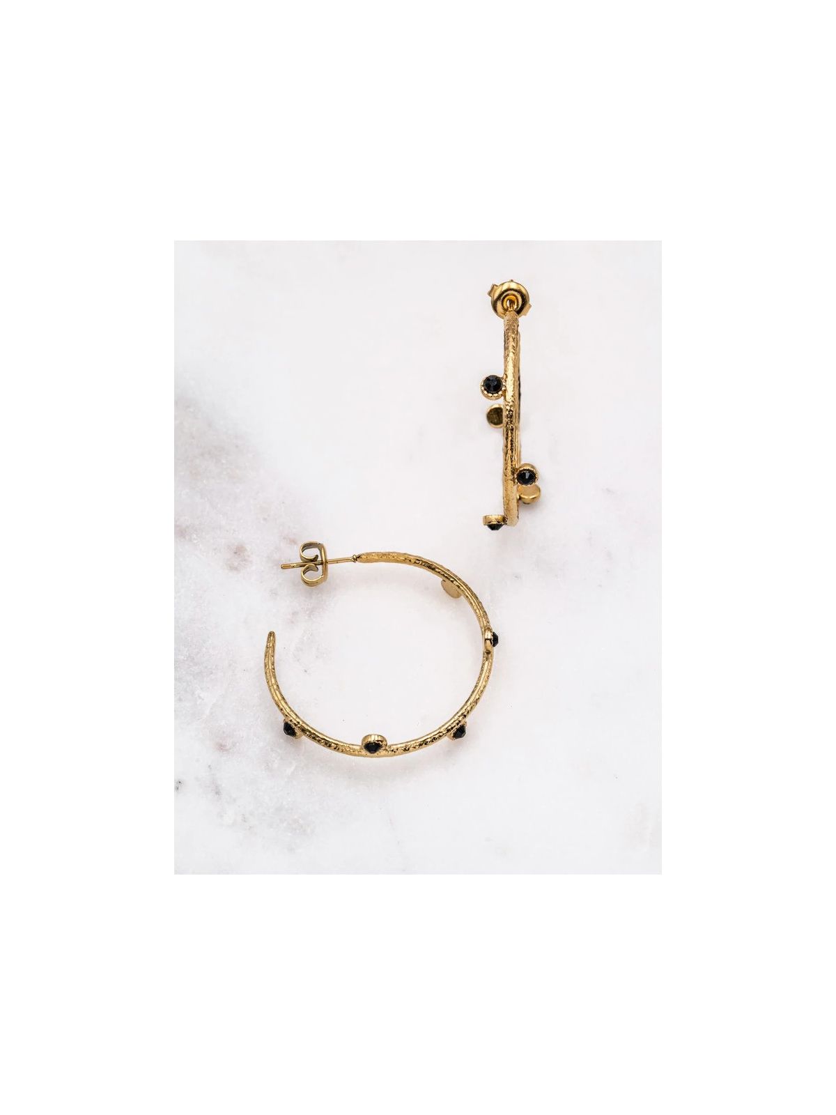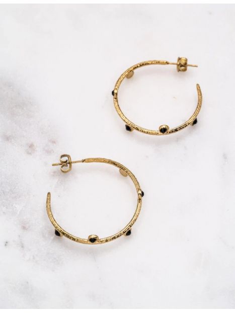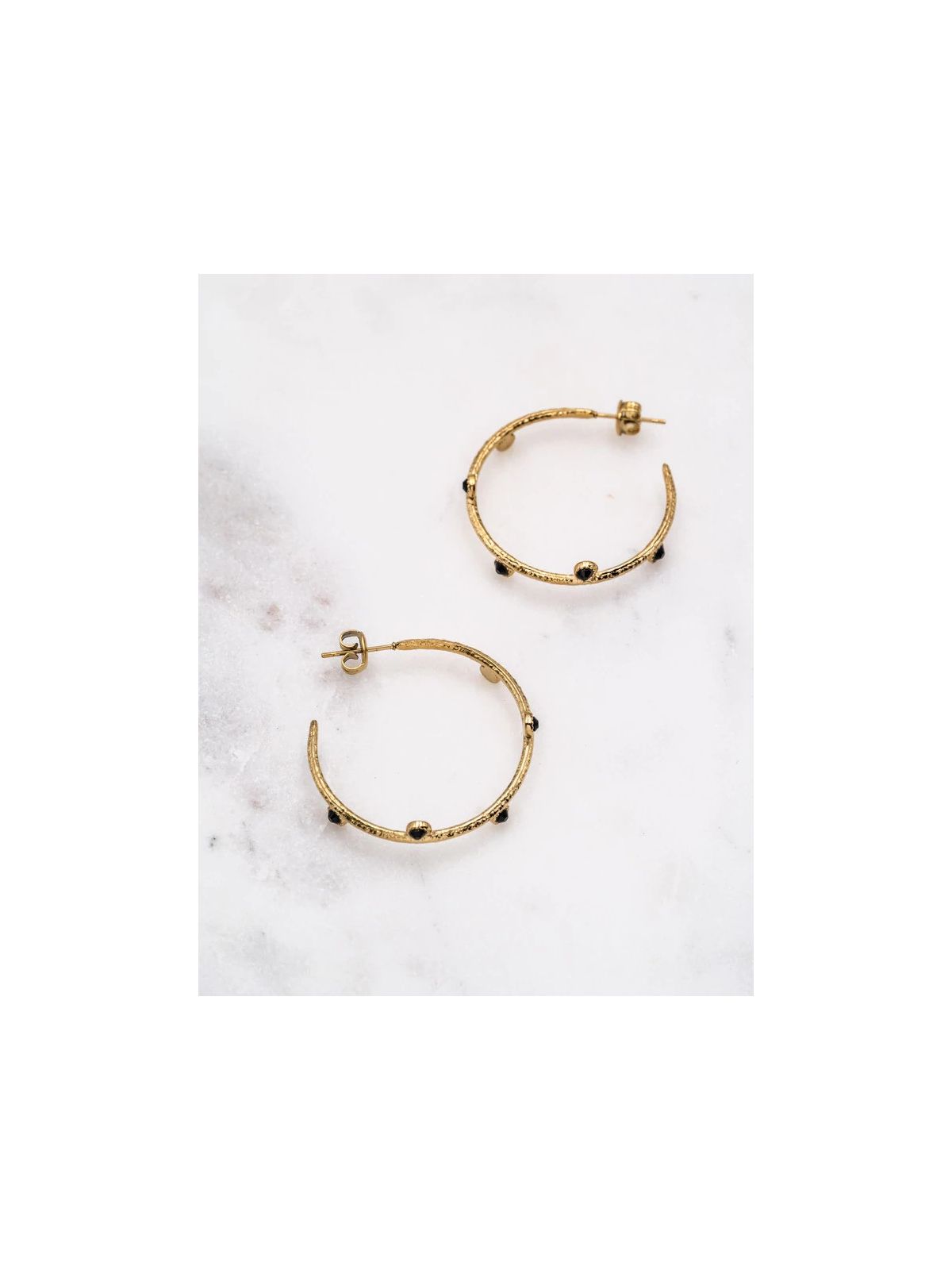 Créoles à puce embellies de strass. Matière : Acier inoxydable. Hypoallergénique, ce bijou résiste à l'eau et ne noircit pas. Diamètre: 3 cm