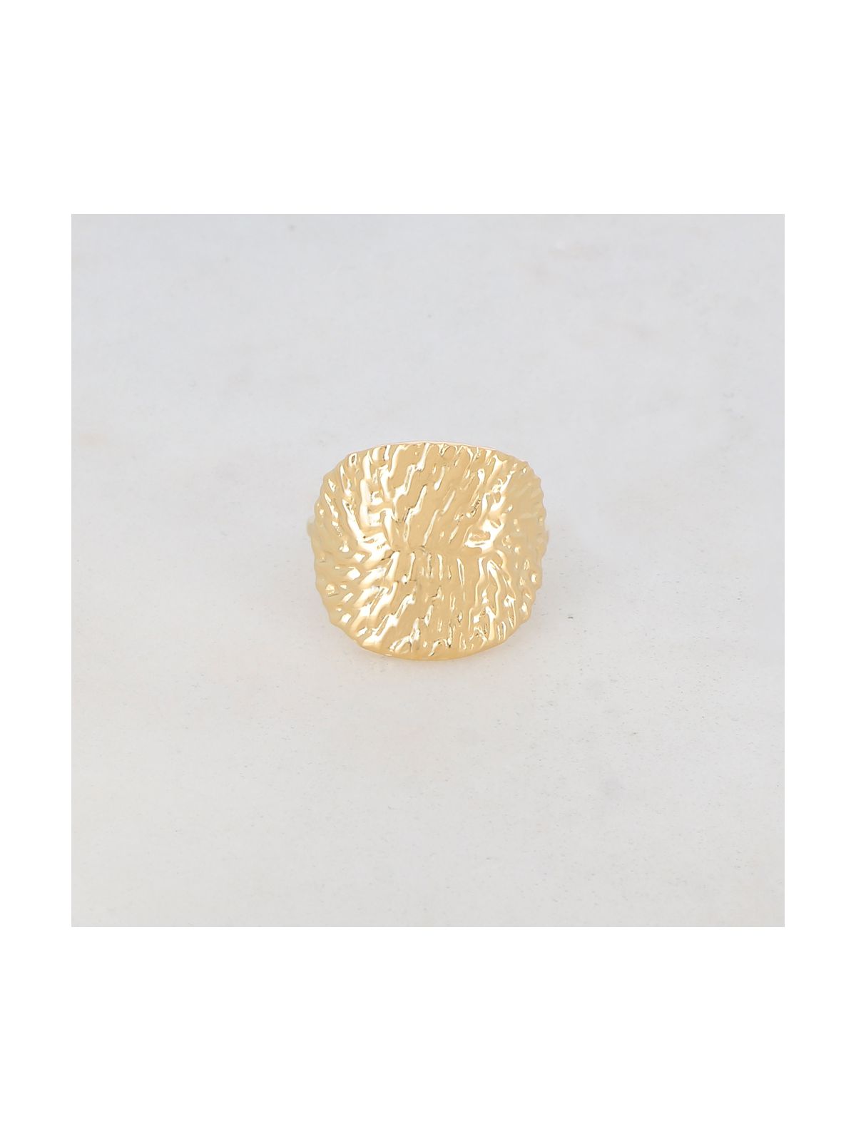 Bague réglable en forme de rond et avec motif graphique. Matière : acier inoxydable. Hypoallergénique, ce bijou résiste à l'eau et ne se noircit pas. Taille recommandée : 52 à 56.