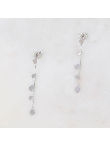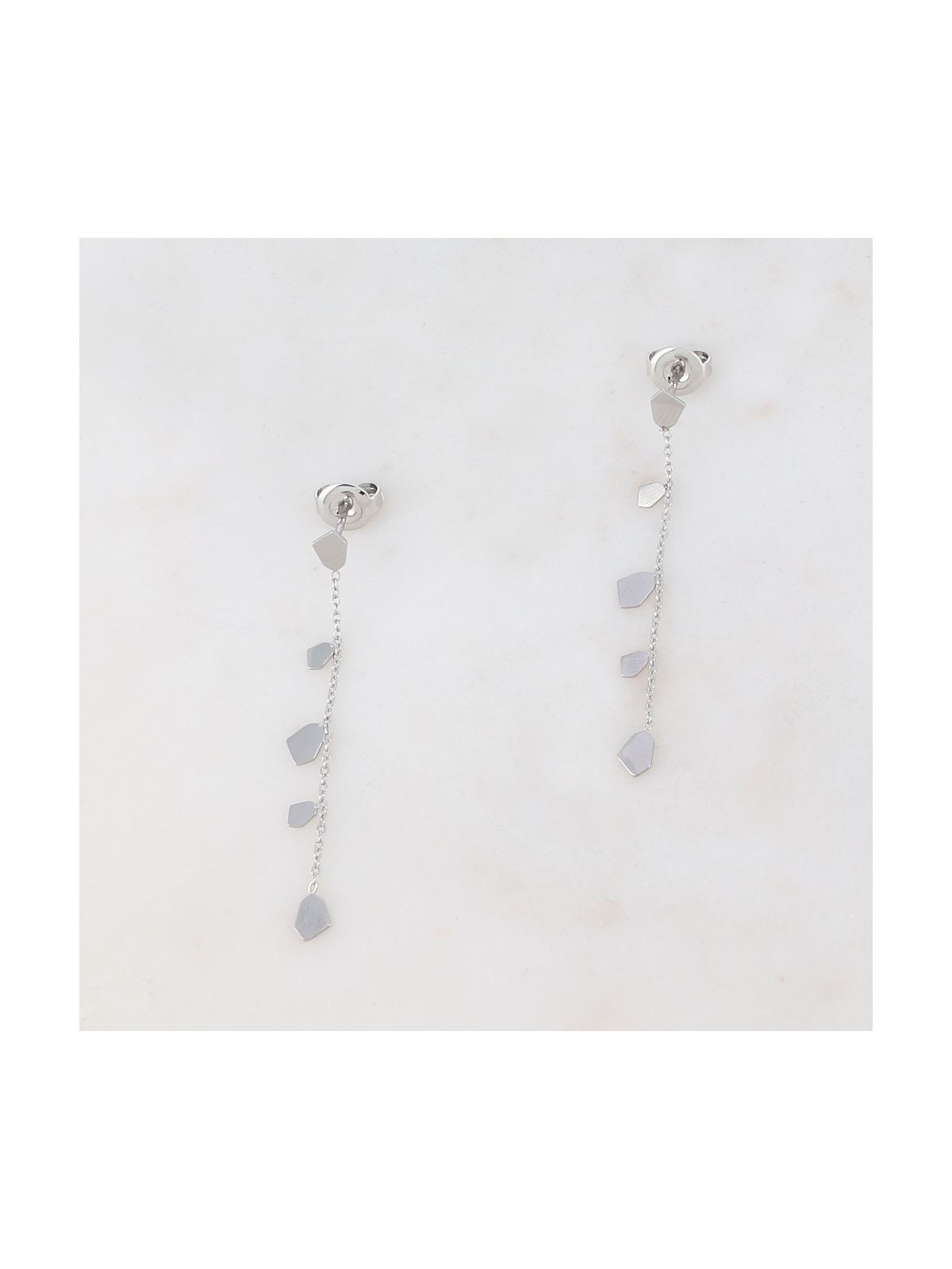 Boucles d'oreilles argentées à puce avec pampilles géométriques - Ikita Paris