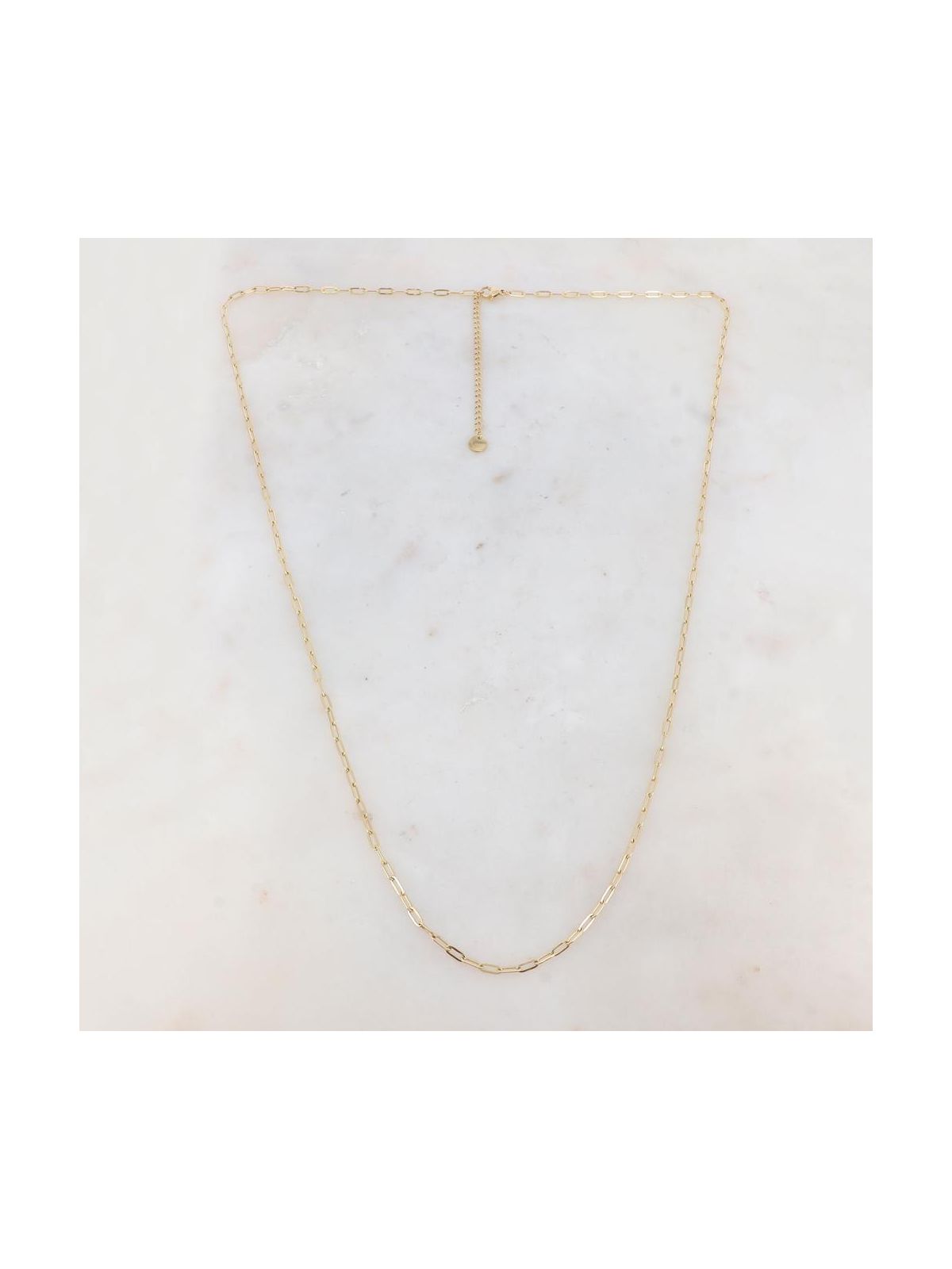 Colliers en maille de type sautoir avec fermoir mousqueton et chainette réglable. Matière : acier inoxydable. Hypoallergénique, ce bijou résiste à l'eau et ne noircit pas. Dimension : 80+8 cm.