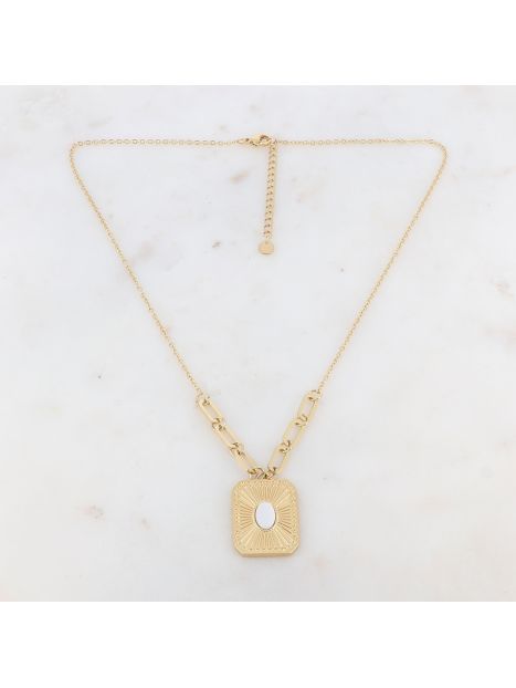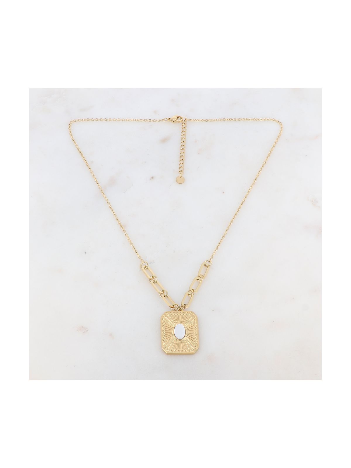 Collier doré composé d'un pendentif en forme de rectangle serti d'une pierre naturelle - Ikita Paris