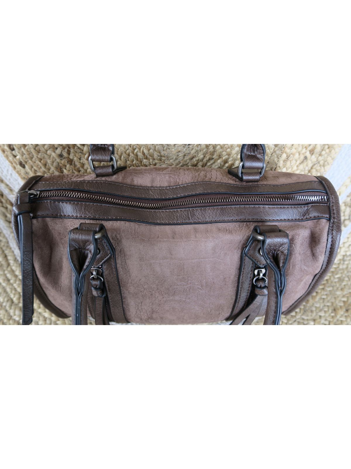 Sac bowling coloris taupe en matière synthétique.