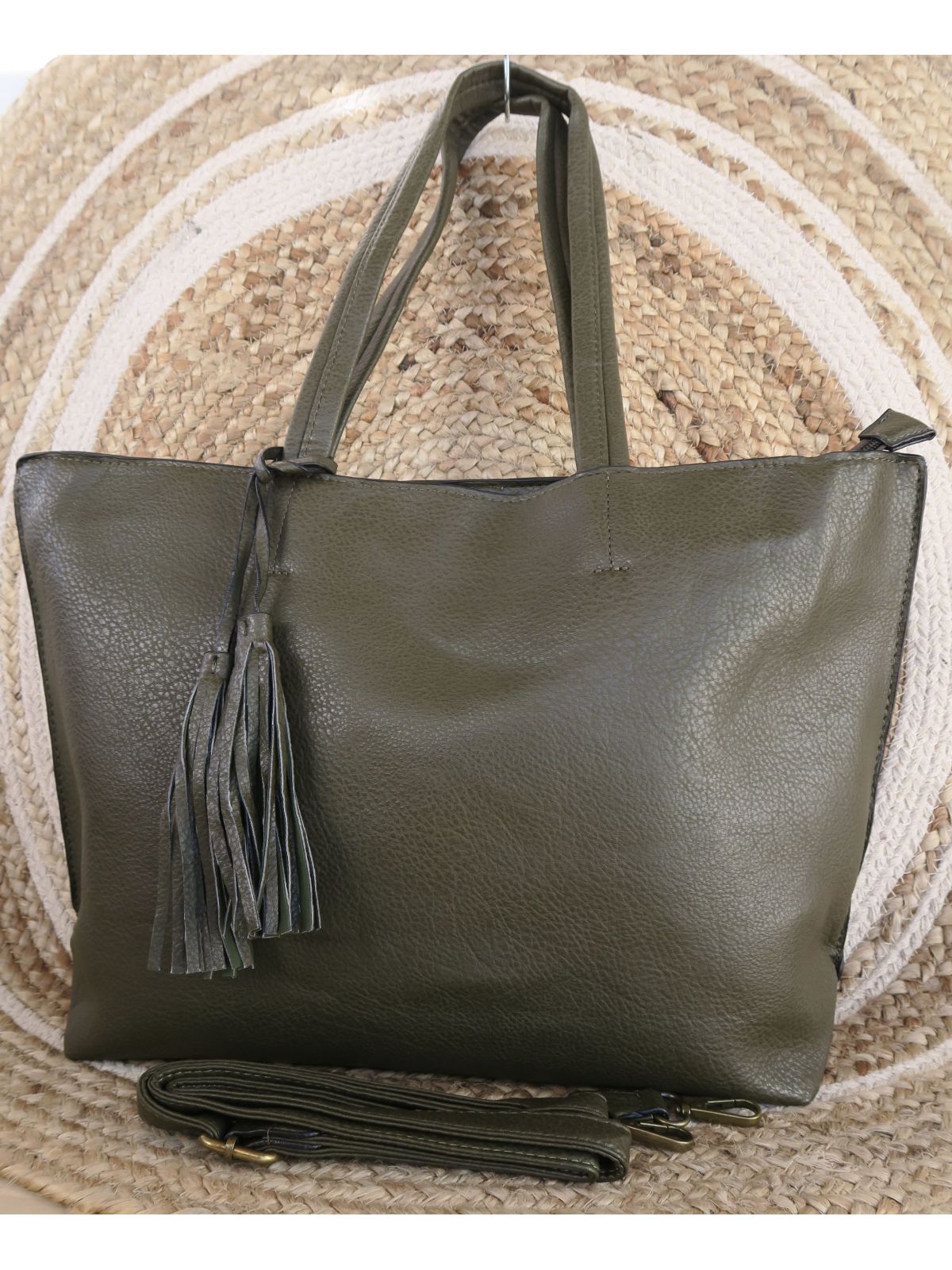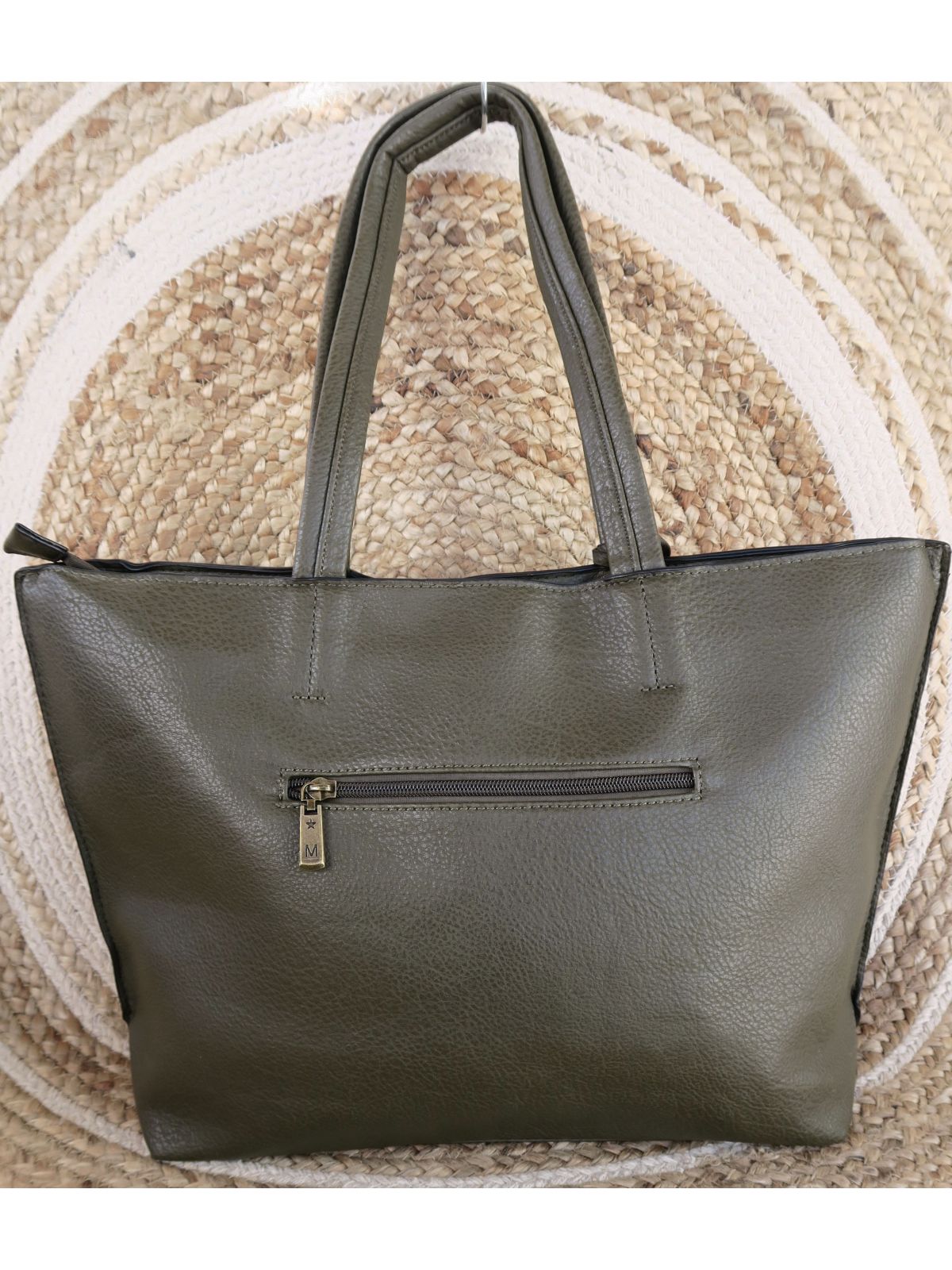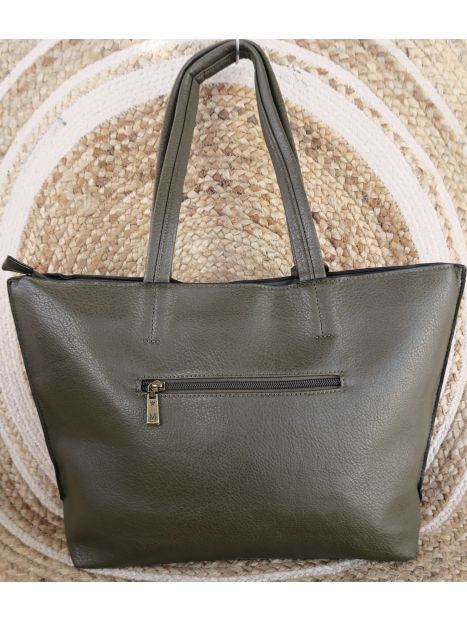Sac cabas grand format porté épaule avec une poche pour les petits objets au dos du sac. Toile enduite et grande contenance.